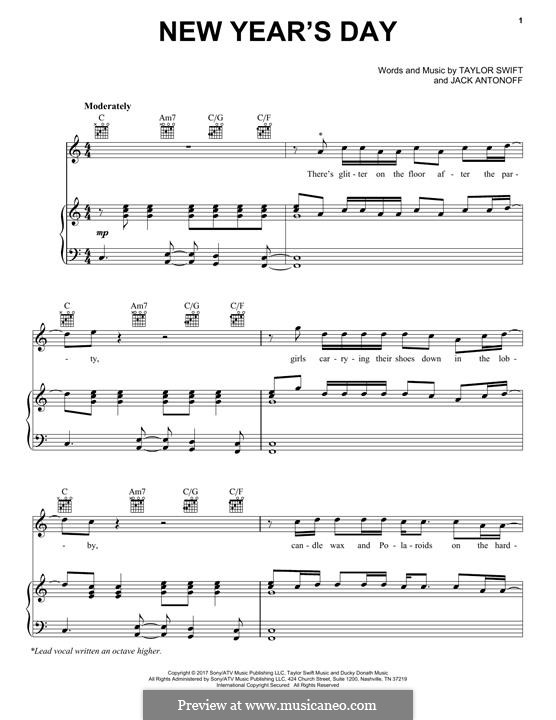 Taylor Swift New Year S Day Sheet Music In C Major Transposable Download Print Sku Mn0179487 from www.musicnotes.com